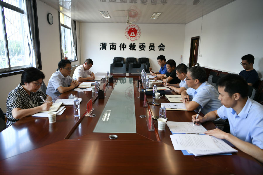 8月1日,省司法廳副廳長丁小軍一行赴渭南仲裁委員會開展仲裁工作調研。丁小軍副廳長考察了渭南仲裁委員會辦公環境及仲裁工作流程,聽取了渭南市司法局黨組書記、局長,渭南仲裁委員會副主任兼秘書長安延會關于渭南仲裁委的基本情況介紹,對照《陜西省司法廳關于開展全省仲裁行業發展秩序清理整頓專項行動的通知》進行自查的相關情況及對仲裁內部治理結構綜合改革試點工作的意見建議做出的匯報。與會人員就目前渭南仲裁委存在的問題、仲裁委員會體制機制改革方向、仲裁員管理、互聯網仲裁業務等有關問題進行了討論交流。