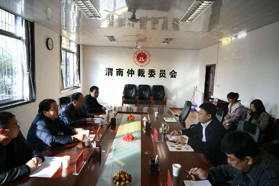 2020年11月9日上午,安康市司法局局長周豐、副局長馬云峰一行五人到訪渭南仲裁委員會,就仲裁委的設立、運行、發展等方面進行考察調研。渭南仲裁辦主任劉永宏及相關辦公室人員參加座談。劉永宏主任首先對周豐、馬云峰局長一行的到來表示熱烈歡迎,并就渭南仲裁委員會的設立情況、制度建設、隊伍建設及目前業務開展存在的問題等方面進行了詳細的介紹。雙方還就仲裁機構的管理體制和改革、仲裁事業發展方面進行了進一步交流。