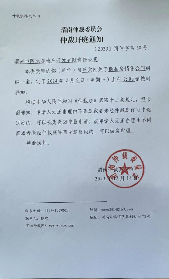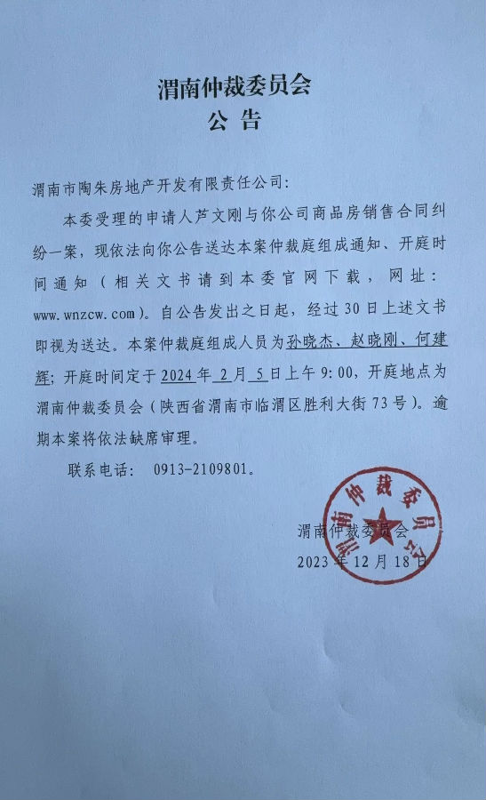蘆文剛與渭南市陶朱房地產(chǎn)開發(fā)有限責(zé)任公司一案公告