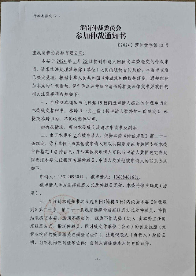 重慶潤雅柏貿(mào)易有限公司、冉啟國與田征租賃合同糾紛案公告